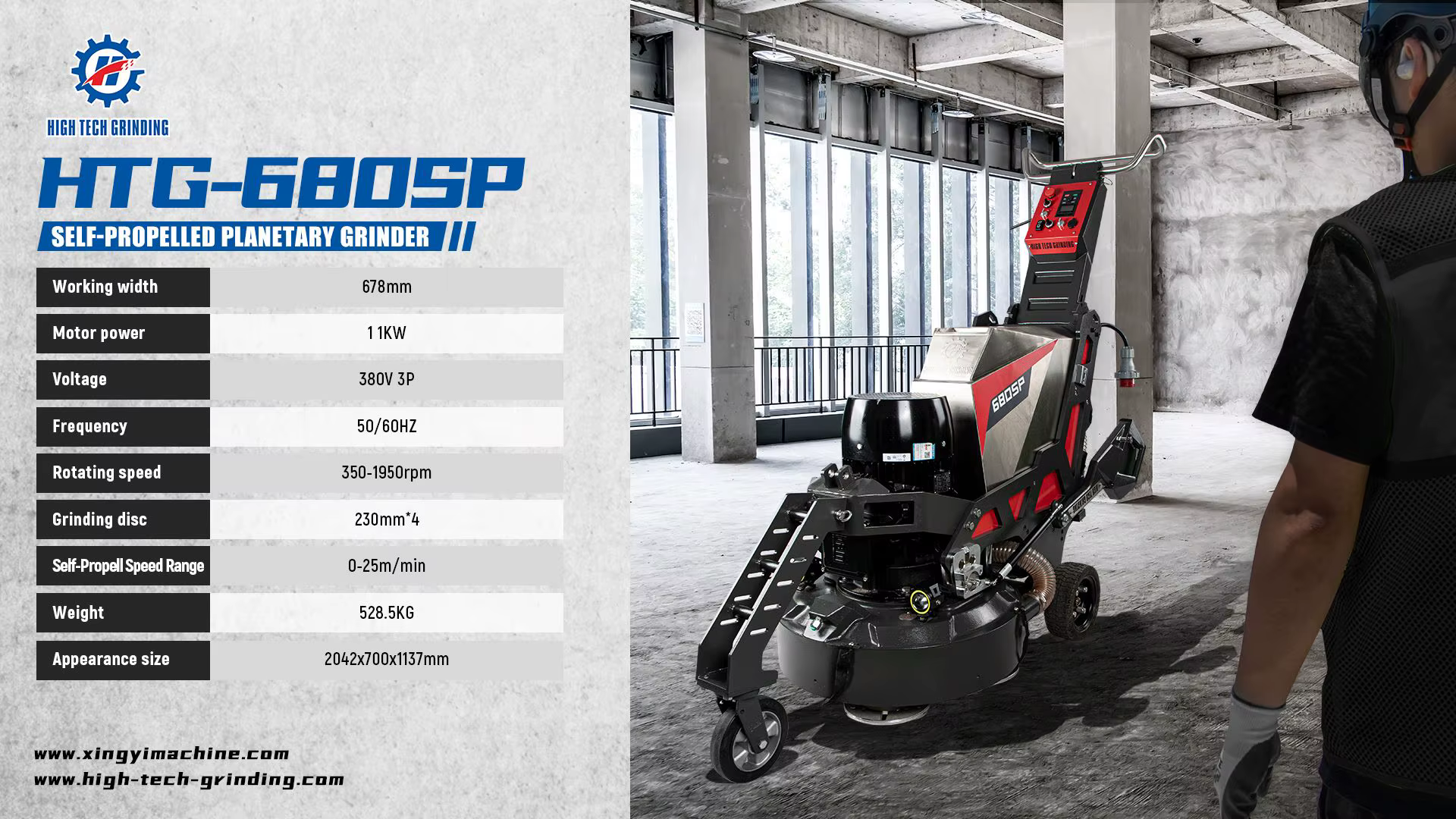 The HTG-680SP is a high-quality, versatile machine engineered for superior performance in concrete floor grinding and leveling. It excels in pre-grinding epoxy floors, curing floor construction, and grinding and polishing marble and terrazzo surfaces. Perfect for sanding, cracked concrete renovation, epoxy pouring, curing, marble restoration, and ongoing maintenance—this machine does it all.